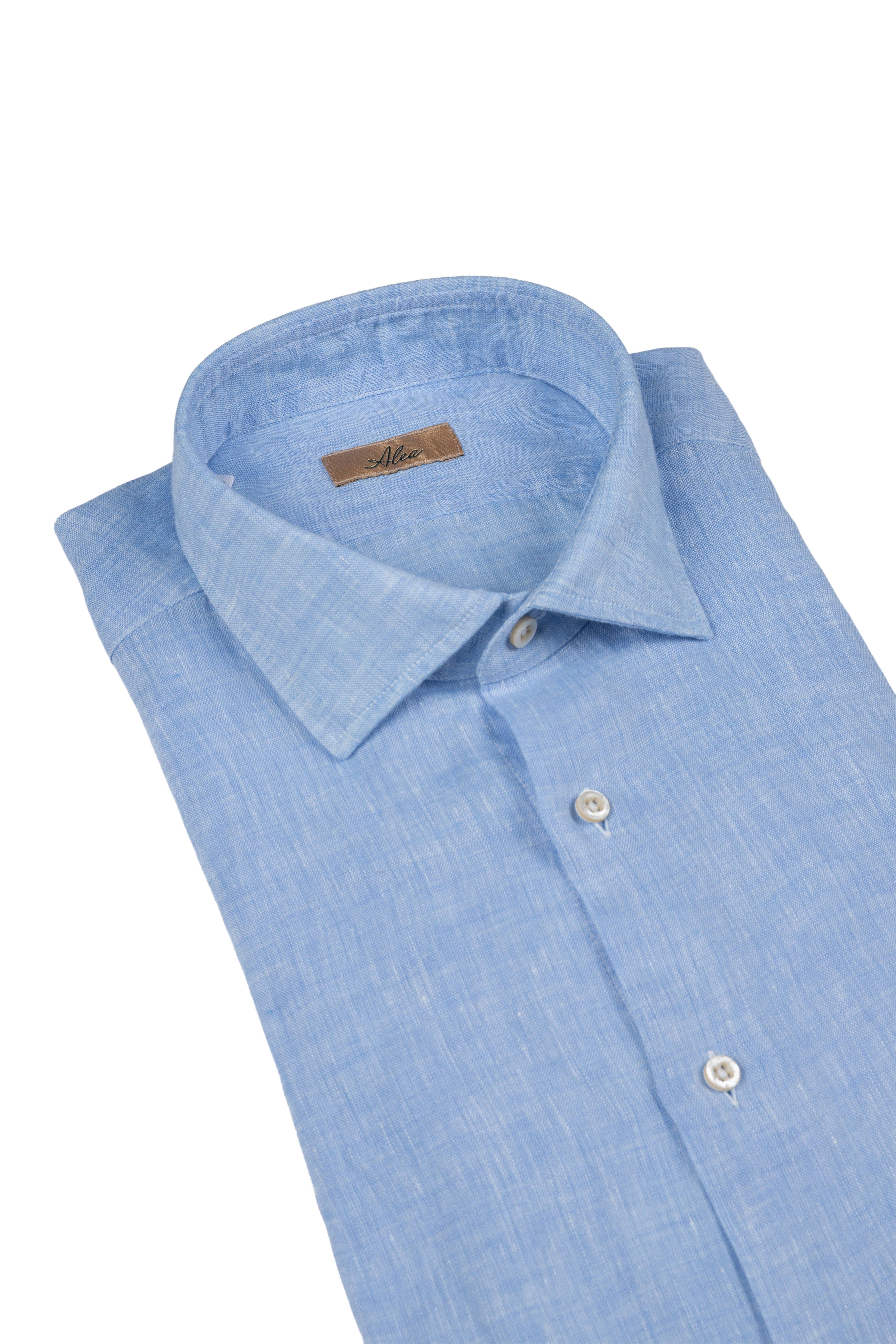 Camicia lino celeste washed collo francese
